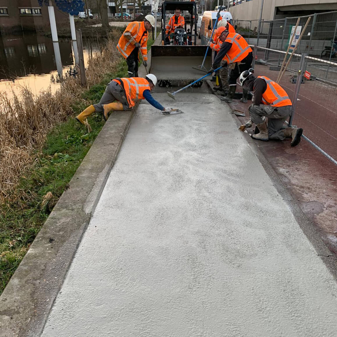 Het busperron krijgt later deze week een de laatste afwerkingslaag. Vervolgens is het nieuwe busperron klaar voor de laatste stap: het plaatsen van perronmeubilair zoals bushaltes, leuningwerk en bankjes. Dit vindt plaats eind maart.De voetpaden in de buurt van het nieuwe busperron krijgen net als het busperron nieuw beton met een afwerking in kleur.