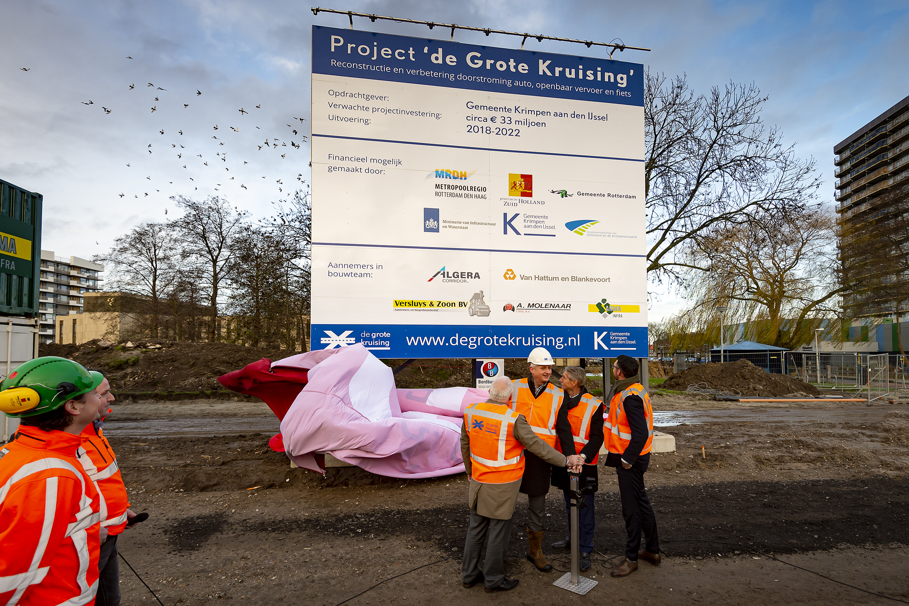 Officiële start project ‘de Grote Kruising’: onthullen bouwbord en eerste paal fly-over